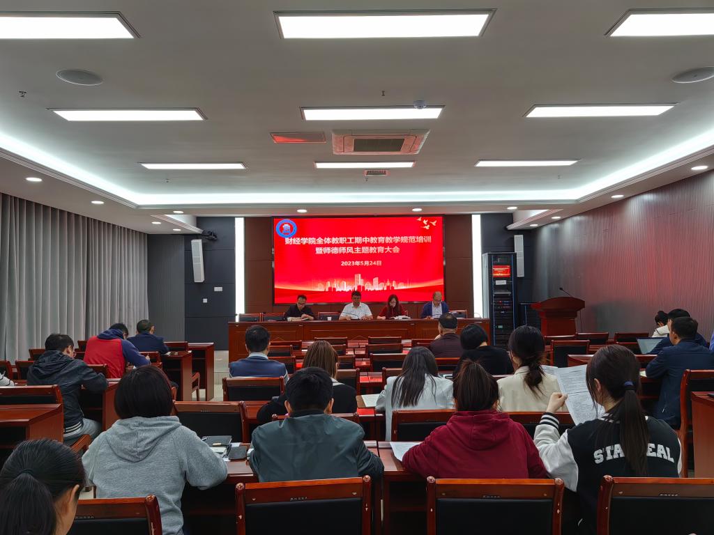 5月24日下午,财经学院在西辅楼111会议室召开期中全体教职工大会。学院党政领导及全体教职工参加会议,会议由院长郝世绵主持。