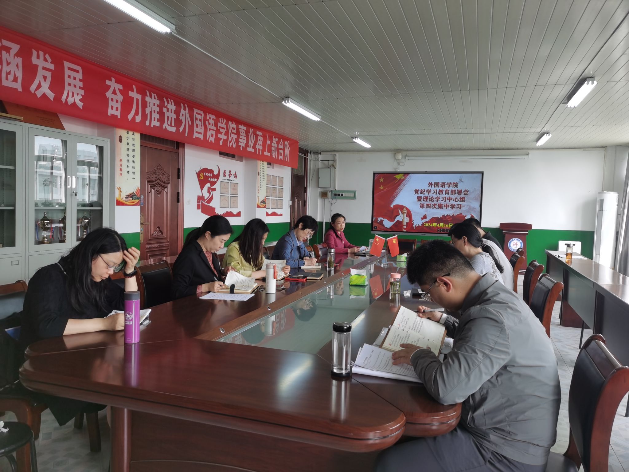 为深入学习贯彻习近平总书记关于党纪学习教育的重要讲话和重要指示精神,落实学校党委有关党纪学习教育的部署要求,4月16日下午,外国语学院党委在学院会议室召开党纪学习教育部署会。学院党委委员、各党支部书记参加会议,会议由学院党委书记蔡为青主持。