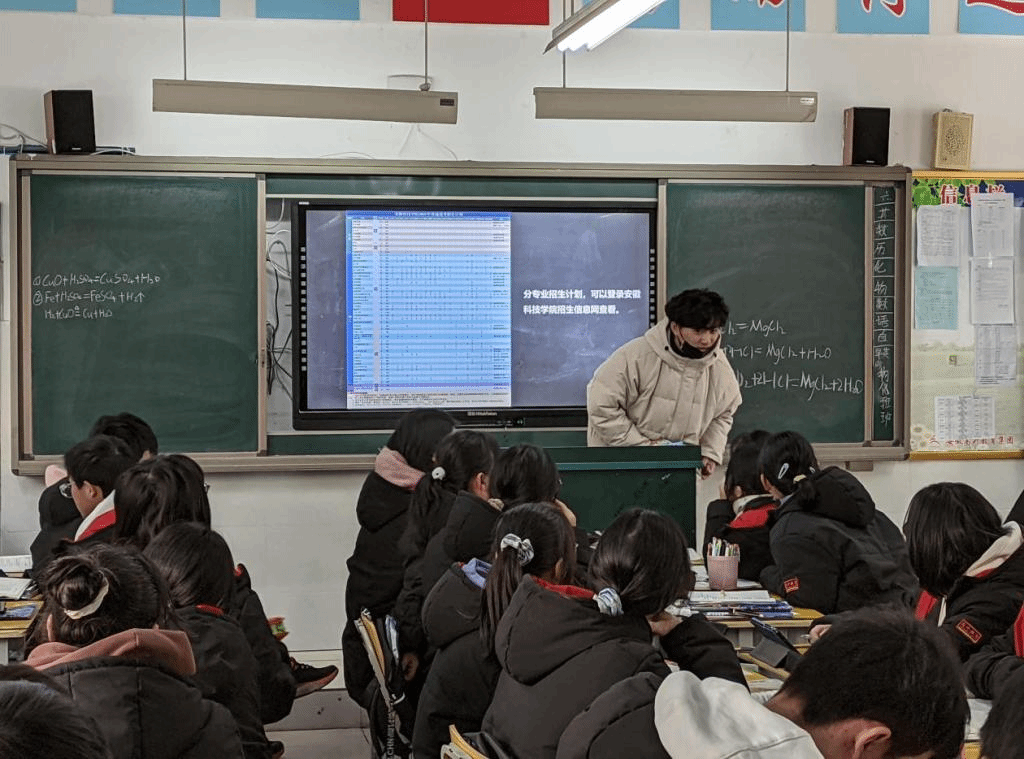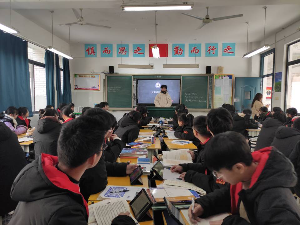 刘志伟团队首先拜访了语文老师王雪莲和英语老师宋梦琼,并与老师进行了交谈。交谈过程中,共同回忆了高中生活的点点滴滴。他向老师汇报了这几个月在大学生活和学习上的变化与成长,向老师展示了在学院参加活动时的照片等。并向老师详细介绍了MILAN.COM的相关情况如学校条件、校园风景、师资水平、考研录取率等。合肥高升学校的年级主任、数学老师宋仔义,他听说团队此行的目的之后,热情地安排了刘志伟团队与高三学子进行互动交流。