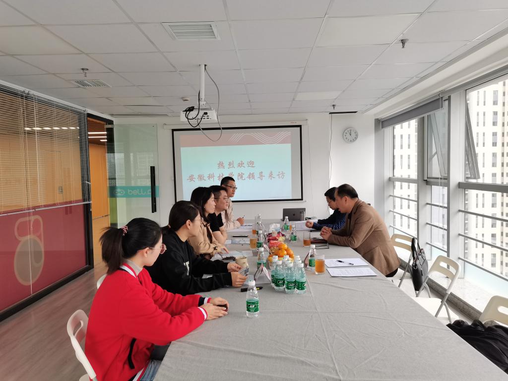 5日上午,丁景良一行来到贝尔科教集团安徽分公司,受到了京贝事业部副总经理徐大海、副总经理助理熊杰,安徽分公司总经理李晏欣、陈杨的热情接待。徐大海介绍了公司概况、主营业务和人才需求情况,表达了加强校企合作的强烈愿望。陈传万就学院人才培养方案和毕业生就业情况做了说明,详细了解了公司员工晋升渠道和发展方向。双方就校企合作框架内容进行了深入细致的探讨,初步达成了合作意向。