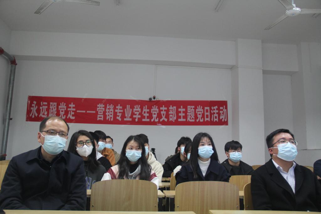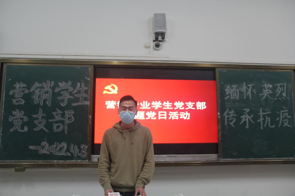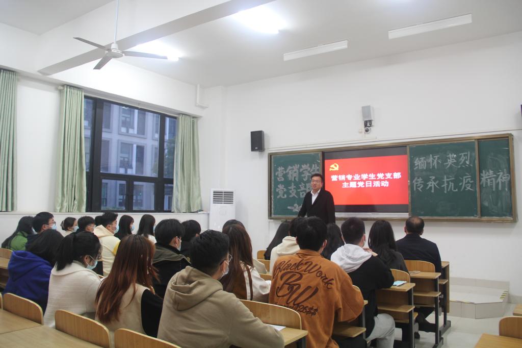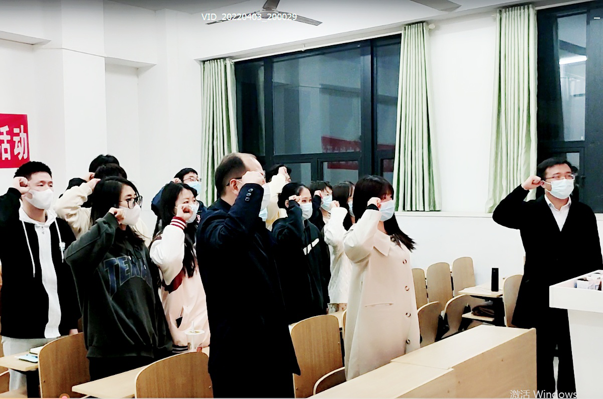 4月3日,管理学院营销专业学生党支部结合校防疫防控工作实际,充分利用“清明节”这一传统节日,举办“战‘疫’正清明 永远跟党走”特别主题党日暨重温入党誓词活动。引导学生党员缅怀英烈,更好传承伟大抗疫精神,守初心、听指挥、担使命,凝聚疫情防控力量,坚决打赢疫情防控阻击战。学院党委书记丁景良参加了支部活动。部分在校外实习不能现场参加主题党日活动的党员同志也通过“云端”的方式全程参加了活动。