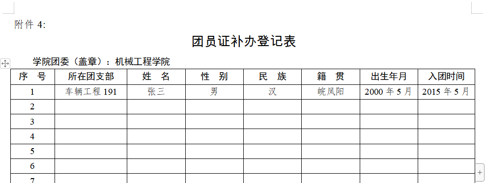 《团员证补办登记表》填写模板