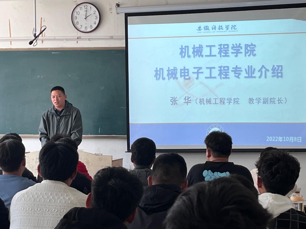 2022年10月8日下午,机械工程学院召开机械电子工程专业2022新生班级专业思想交流会,本次交流会由学院党委委员、副院长张华教授主讲,专职辅导员姚迪主持,机械电子工程专业223班全体同学到场参与。