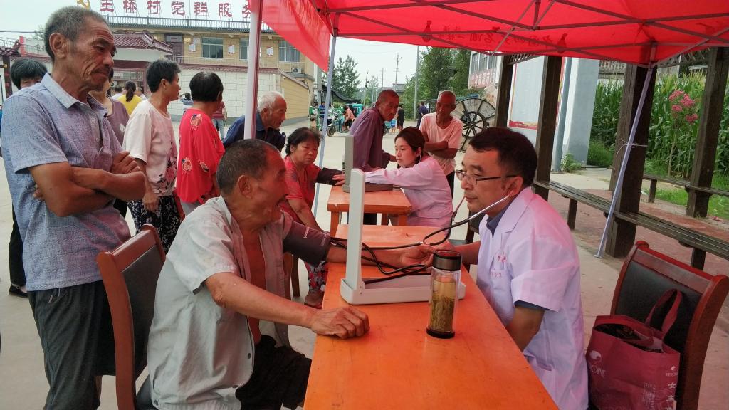 曹军等医护人员在王桥文化广场为广大村民开展了送医送药下乡志愿服务活动;在王桥村五座楼小学教室里,陈慧中用灵活的方式为村上的留守儿童进行了一堂趣味横生的“五防”安全讲座。