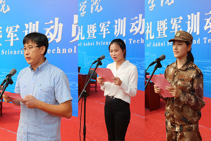 韦文联作军训动员讲话。他指出,即将开始的军训是新同学学习军队优良作风和培养艰苦奋斗精神的大课堂,是新同学磨砺意志、加强修养、增强体质的好机会,也是一次集“训体魄、训纪律、训思想、训作风、训品格”于一体的大熔炉。希望同学们要端正态度,积极投入军事训练,克服怕苦怕累的畏难情绪,以饱满的政治热情、高昂的精神状态积极投入到军训中来,出色完成训练任务。要严明纪律,锤炼过硬的军事作风。要以军人的标准严格要求自己,不畏艰难、刻苦训练,要练出风采、练出安科学子的精、气、神,以饱满的精神状态拉开大学生活的精彩序幕,以优异的军训成绩向建校70周年献礼!