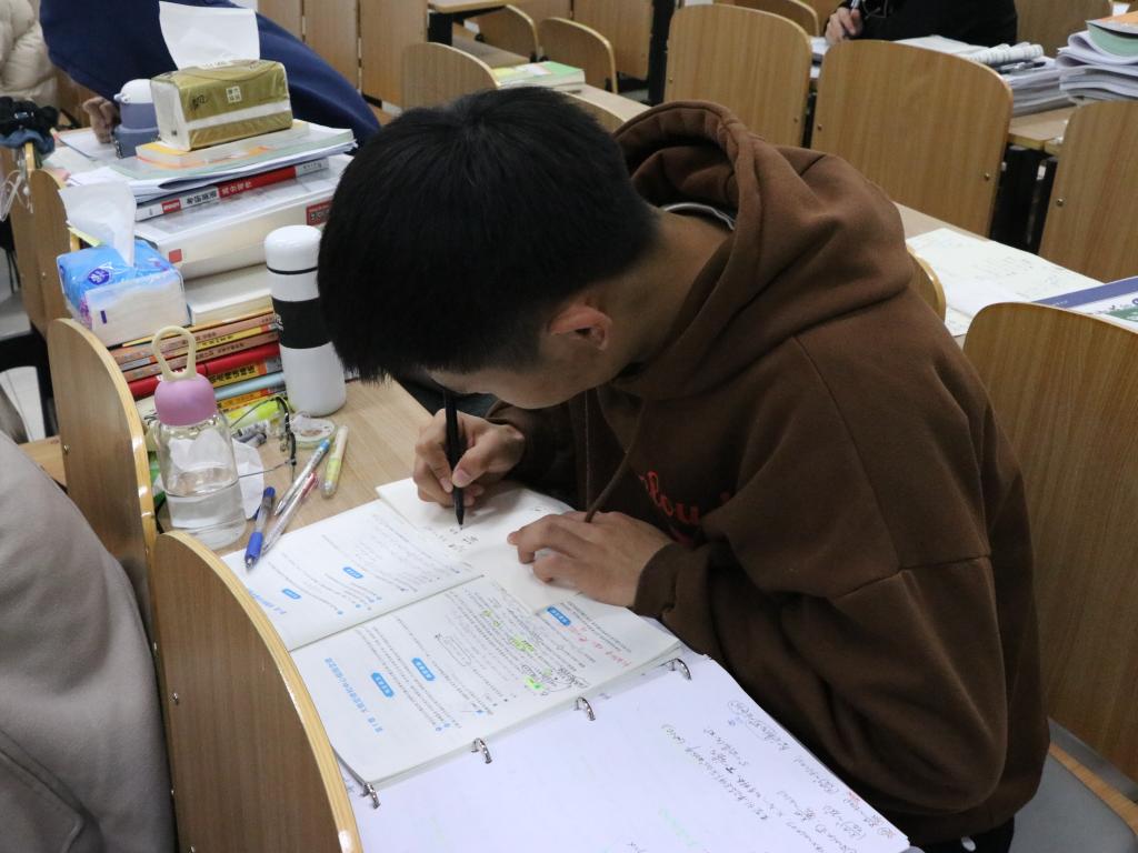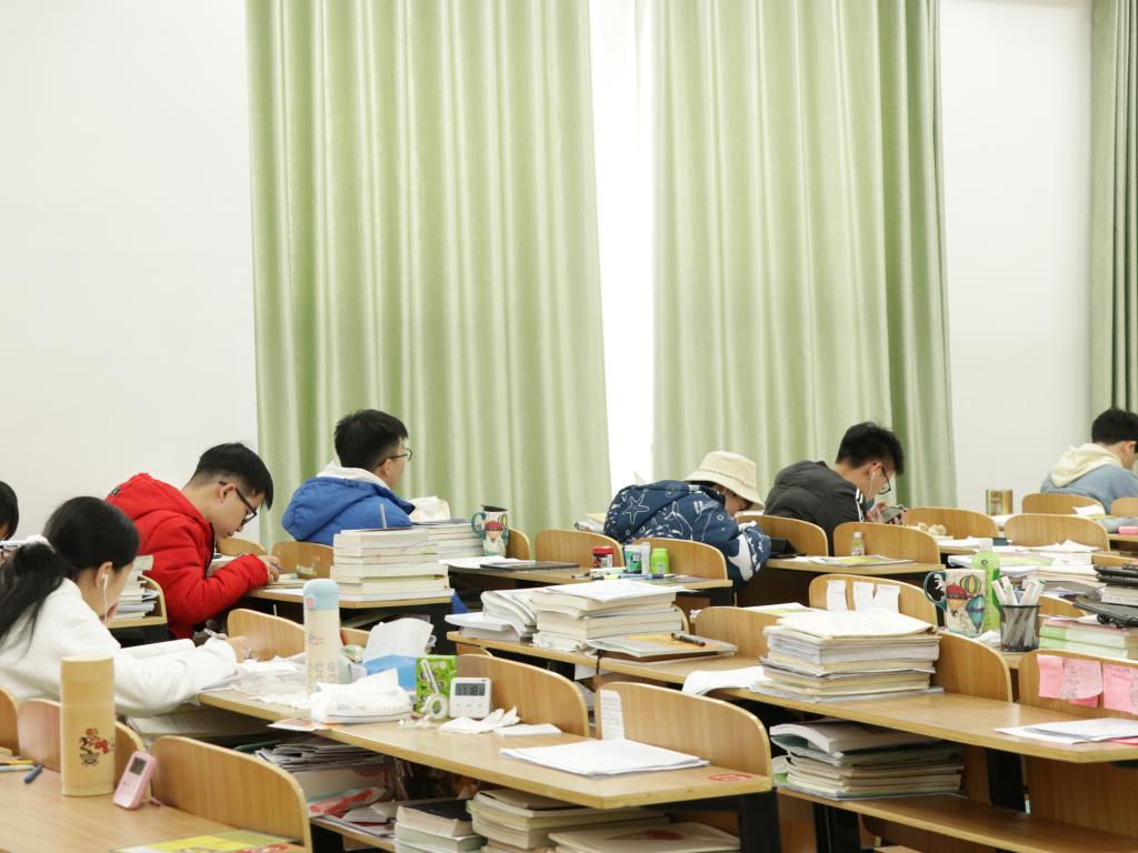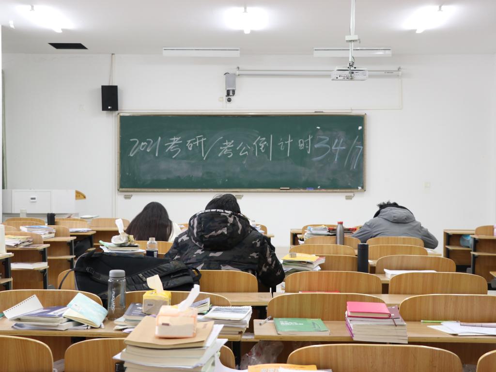 黑板上的数字在变小,时间也在变少,但我们的力量在变大,知识也在变多,四周堆满的考研资料见证着安科学子的努力,看着他们追逐梦想。