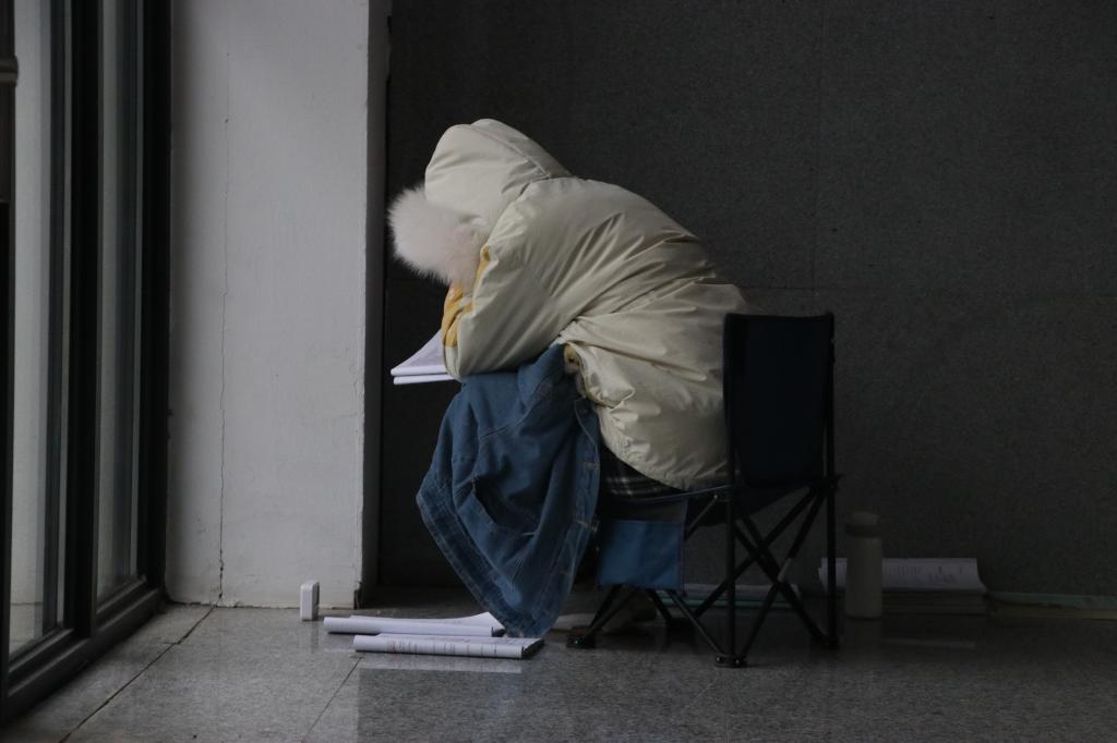 天刚蒙蒙亮,“考研党”早早奔向图书馆,抢“占”一席桌位。