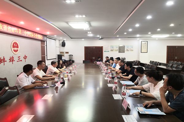 6月29日,校党委书记蒋德勤一行赴优质生源基地中学开展校际交流,深入调研2021年高考生源情况并指导招生宣传工作,受到蚌埠市第三中学党委副书记龚克明、副校长陈虎等的热情接待。