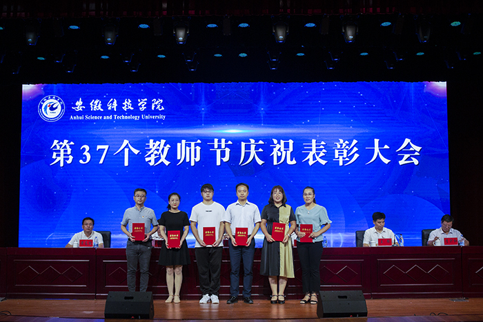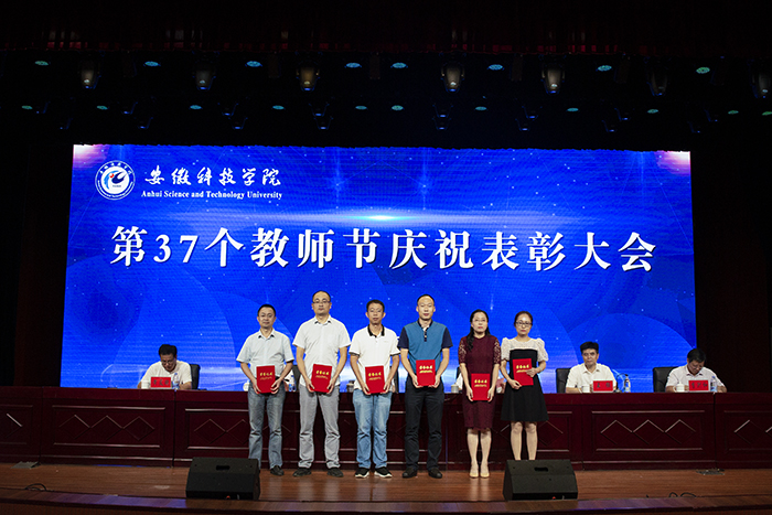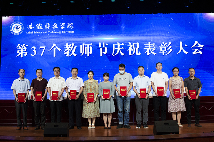 以德执教,淡泊名利坚守平凡;学思结合,不问前程但行耕耘。9月10日下午,学校以“赓续百年初心,担当育人使命”为主题,在凤阳校区大学生活动中心隆重召开2021年教师节庆祝表彰大会,对一年来全校在教学科研、脱贫攻坚、立德树人及文明创建等方面获奖人员进行了集中表彰,并为退休教职工代表颁发荣休证书,全体新进教师还进行了集体入职宣誓。校党委书记蒋德勤,党委副书记、校长李震,党委委员、副校长黄远友,党委委员、纪委书记、监察专员王强,党委委员、副校长黄友锐,党委委员、副校长李升和出席大会。会议由李震主持。