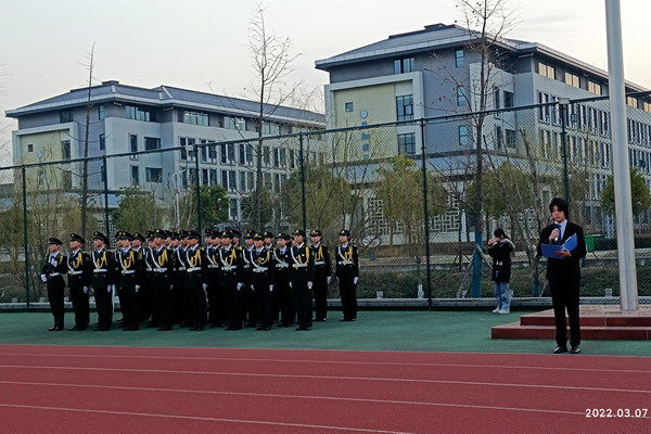 3月7日清晨,我校在龙湖校区南田径场举行升旗仪式暨“四史”经典诵读活动。党委学工部秘书、国旗护卫队指导老师石志成,财经学院专职辅导员朱中军,财经学院2021级400余名学生和龙湖校区校八一社学生参加活动。活动由财经学院学生会艺术团顾驭天主持。