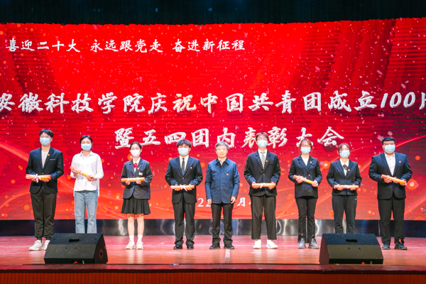 为庆祝中国共青团成立100周年,引领我校青年学子弘扬五四精神,以优异成绩迎接党的二十大胜利召开,5月4日下午,我校“喜迎党的二十大 永远跟党走 奋进新征程”庆祝中国共青团成立100周年暨五四团内表彰大会在凤阳、龙湖两校区同时进行。校党委书记蒋德勤出席大会并为受表彰青年先进典型代表颁奖。校党委委员、宣传(统战)部部长卫胜,校党委委员、组织部部长钱锐,党委学工部部长、学生处处长何永勇,党委研工部部长、研究生处处长张春雨,党委宣传(统战)部副部长、校团委书记黄立义,与各学院团委书记和团员青年代表共同参加了活动。