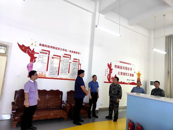 5月27日上午,蚌埠军分区动员处处长茹卫东、参谋徐小林来我校调研征兵工作站(兵役服务站)建设。党委学工部部长何永勇、人民武装部部长余德锋、学工部副部长胡文靖参加调研。