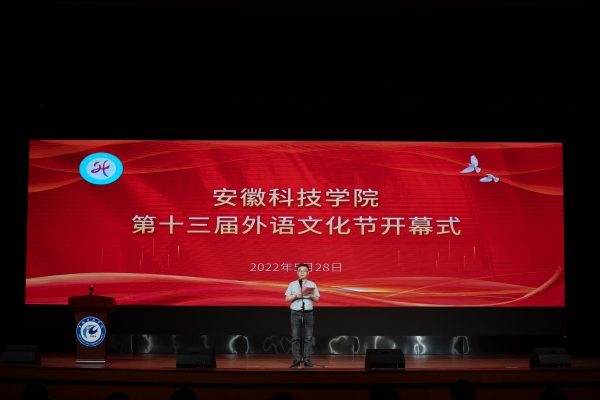 外国语学院党委副书记张海亮宣读MILAN.COM第十三届外语文化节实施方案,工作人员宣读建筑学院等单位为外语文化节开幕发来的贺信。
