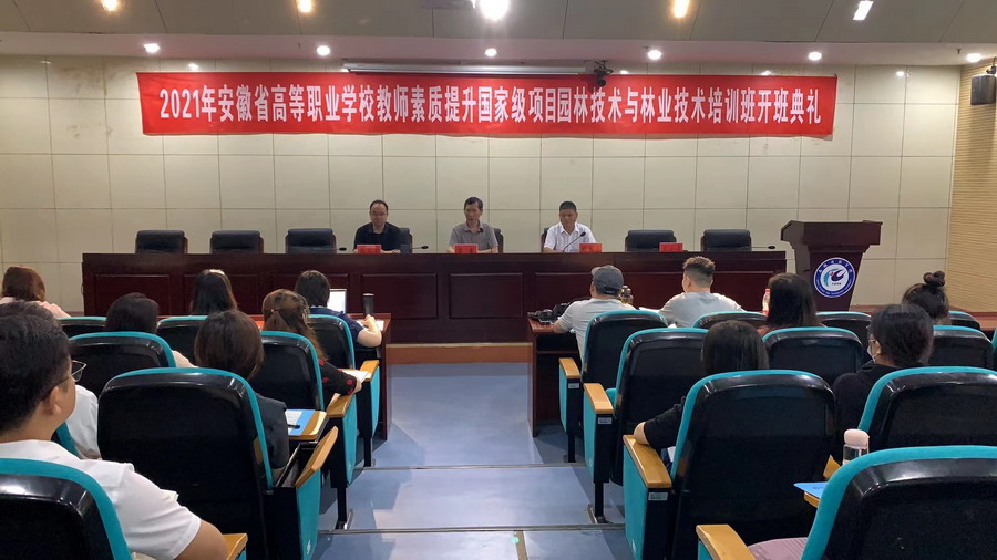 为贯彻习近平总书记关于职业教育的系列重要论述,扎实推进我省高等职业院校“双师型”教师队伍建设,有效提升我省高等职业院校教师队伍的整体素质,根据《安徽省教育厅关于做好2021年度高等职业院校教师素质提高计划国家级项目培训工作的通知》等有关文件精神,在安徽省高职师培中心的支持和指导下,6月28日上午,由我校承办的安徽省高等职业院校教师素质提高计划国家级培训项目园林技术及林业技术专业培训班开班典礼在凤阳校区会议中心一楼报告厅举行。校党委副书记、院长李震、继续教育学院院长杨维来、副院长张文国以及来自全省21所高等职业院校全体学员参加开班典礼,典礼由杨维来主持。