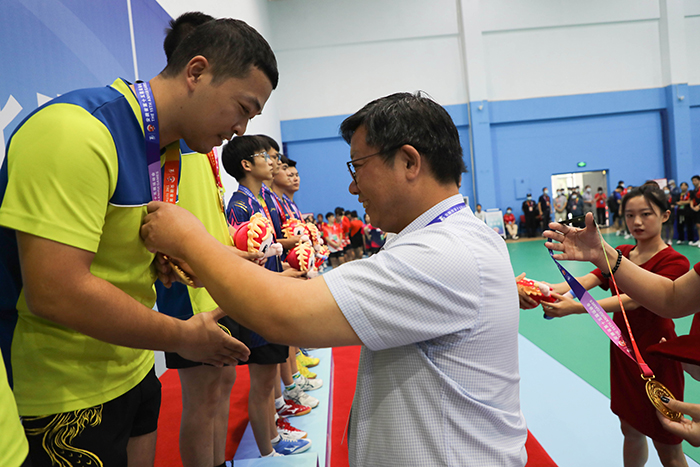MILAN.COM党委书记蒋德勤,党委副书记、院长李震,党委委员、副院长李升和,安徽省第十五届运动会高校部乒乓球比赛竞赛委员会成员武昌桥和比赛监督、比赛仲裁、比赛裁判长以及相关领导分别为获奖队伍颁发奖牌和纪念品并与获奖团队合影留念。