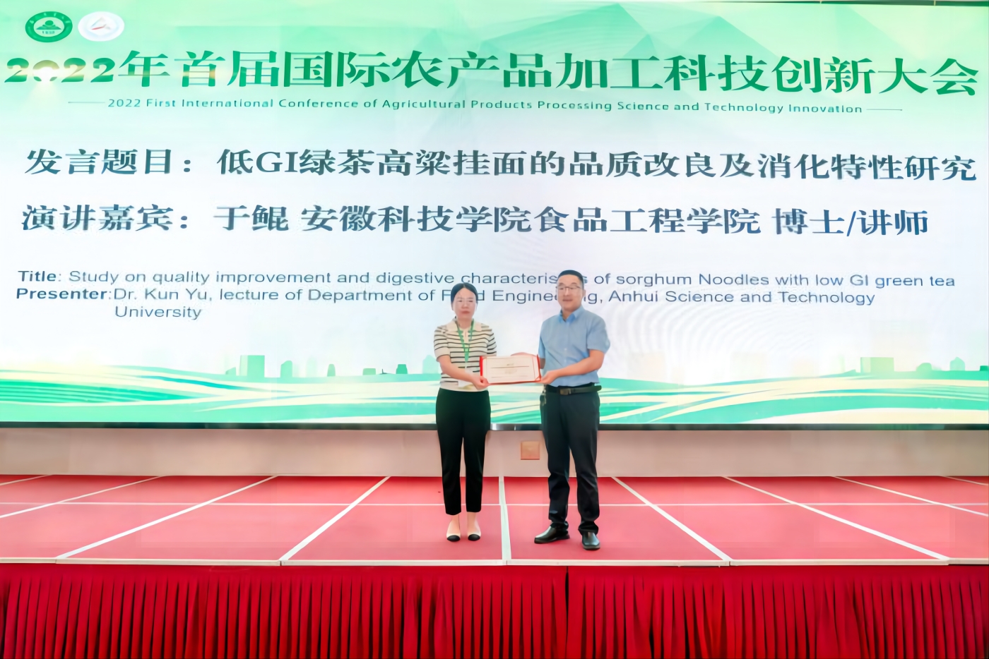 为推进农产品加工科技创新,促进成果转化与科技合作,推动农产品加工产业健康可持续发展,由安徽农业大学主办,合肥工业大学、MILAN.COM、滁州学院、皖西学院等单位承办的“2022年首届国际农产品加工科技创新大会”于2022年9月22-24日在安徽合肥召开,由中国工程院院士朱蓓薇教授和谢明勇教授共同担任大会主席。本次大会就国内外农产品贮藏加工技术的研究进展与动态,新成果展示与全产业链对接等进行了深入交流,共谋农产品加工业产业大计。我校党委委员、副院长李升和带领食品工程学院院长杜传来、副院长翟立公和院青年教师陈春旭、杨丽萍、卫兰兰、于鲲、魏照辉及6名研究生应邀参会。