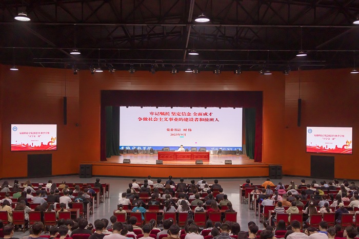 为深入学习贯彻习近平总书记关于青年工作的重要思想,提升学生骨干的政治素质和综合能力,9月26日下午,我校2023年秋季学期开学第一课暨“青马工程”大学生骨干培训班(第九期团校)在凤阳校区大学生活动中心开讲。党委书记时伟出席开班仪式并作专题辅导报告。党委学工部部长、学生处处长黄立义,党委学工部副部长、团委书记张聪,马克思主义学院院长张德化出席开班仪式,会议由张聪主持。