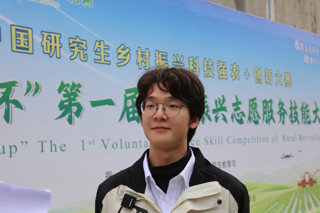 湖南农业大学“‘湘’村绘梦公益实践团队”:本次大赛是促进了研究生的务实创新意识。这个平台能够展现我们在乡村振兴方面做的一些工作和努力,很高兴在这次活动中我们用自己的实际行动为乡村振兴贡献出自己的力量。希望能够用我们有限的力量影响更多的青年投身到乡村振兴的事业中,用我们微薄的声音去去汇集更多的青年和更多的力量去到乡村,为强国建设、民族复兴贡献我们的青春。(摄影:吴伟琪 审核:姚文均 编辑:李锦)