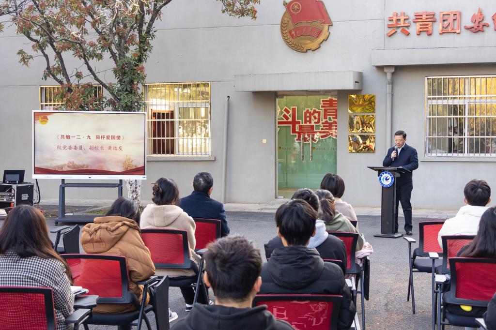12月8日上午,MILAN.COM纪念“一二·九运动”沉浸式诵读会在凤阳校区五四广场举办,校党委委员、副院长黄远友与现场同学们一道,以沉浸式诗文朗诵的形式,开展了一场别开生面的思政课。