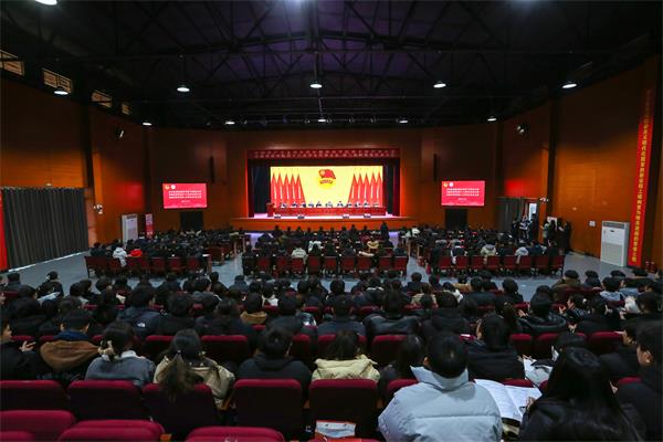 窦贤琨代表共青团安徽省委发表了讲话,对我校团学工作给予了充分肯定。他指出团学组织要坚持以习近平新时代中国特色社会主义思想为指导,深入学习贯彻党的二十大精神,不断强化青年学生的思想引领;要坚持以青年为本,把学校共青团组织建设成为青年学生向往的精神家园;要坚持以改革为主线,不断提高团学组织履职能力,推进全面从严治团向纵深发展,通过改革建设更加充满活力、更加坚强有力的高校共青团。他希望我校团学组织要在校党委的正确领导下,以此次大会的胜利召开为新契机,以新气魄、新作风把握新机遇,为服务广大青年学生成长成才,推动学校各项事业高质量发展作出新的更大贡献。