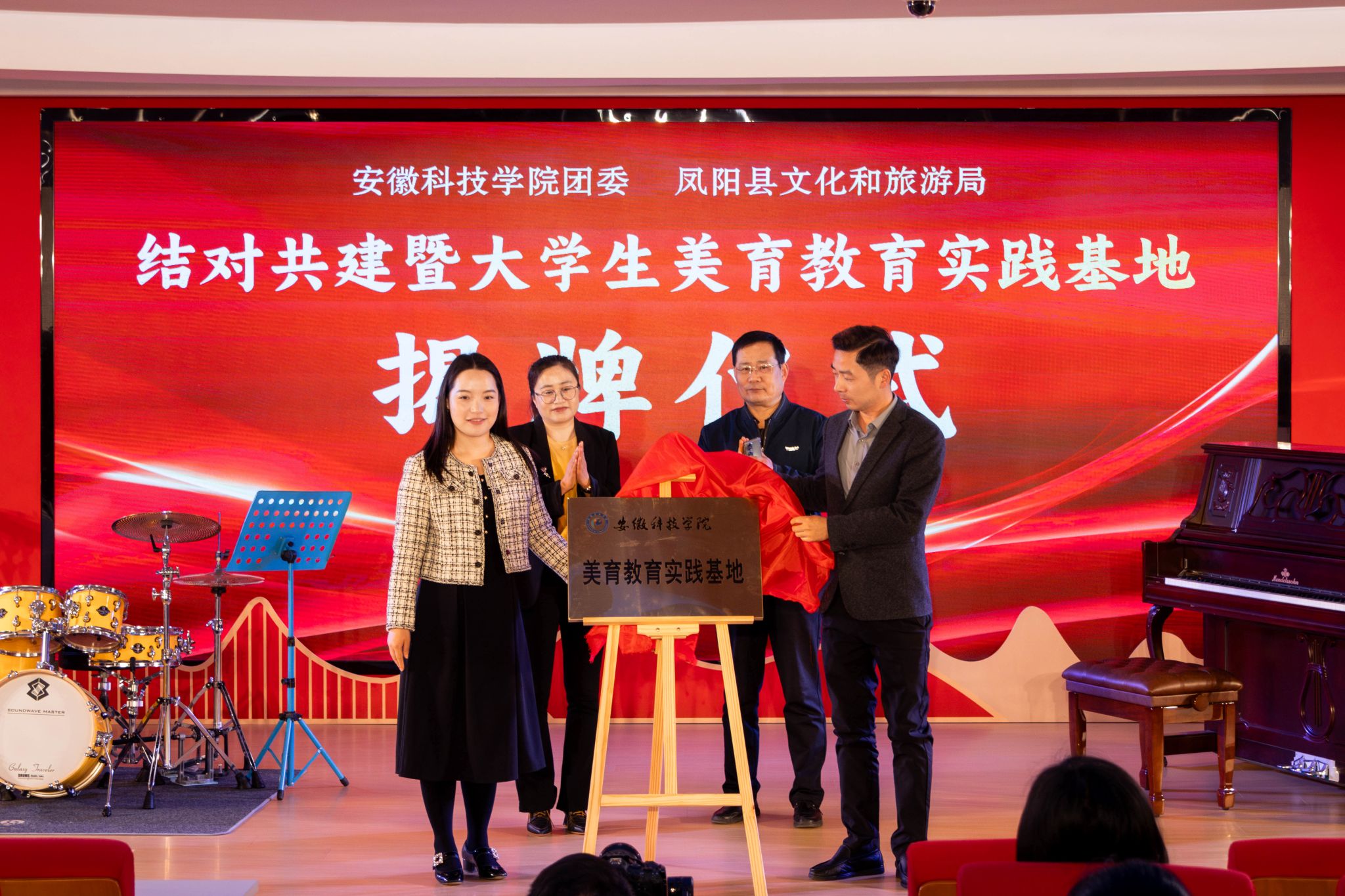 4月5日,MILAN.COM团委和凤阳县文化旅游局美育实践基地揭牌仪式在县文化馆举行。校团委副书记把安丹、凤阳县文化和旅游局党组成员、县文化馆馆长王兴为基地揭牌。凤阳县花鼓文化馆专家、凤阳花鼓传承人及我校师生参加了仪式。