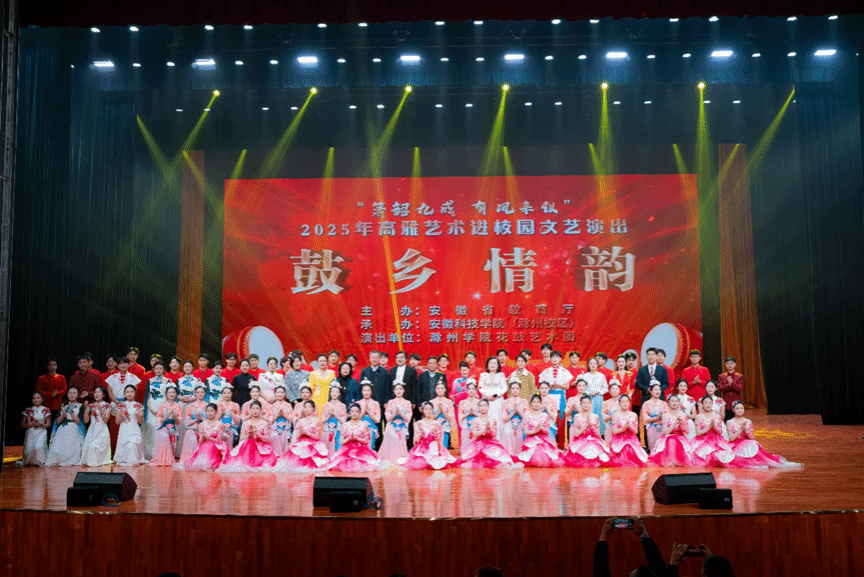 10月21日,由安徽省教育厅主办的2025年高雅艺术进校园活动在我校滁州校区成功举办,滁州学院花鼓艺术团为我校师生带来了一场精彩纷呈的高雅艺术盛宴。校党委副书记曹付忠,滁州学院党委常委、副院长曾献功,两校相关职能部门和我校滁州校区各学院负责同志、师生代表600余人共同观看了演出。