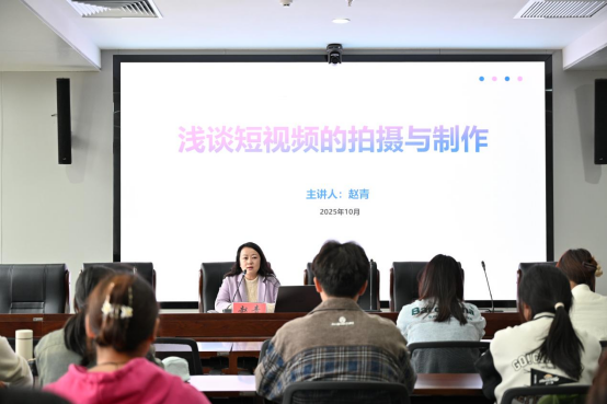 为进一步做好学校的新闻宣传工作,提升宣传队伍的专业素养,10月29日下午,我校在滁州校区开展“新闻媒体进校园”暨宣传思想文化工作专题培训,特邀滁州市广播电视台新媒体中心副主任赵青以“浅谈短视频拍摄与制作”为题作报告。党委宣传部新媒体中心全体滁州校区成员参加会议,党委宣传部新媒体中心指导教师陈晋主持会议。