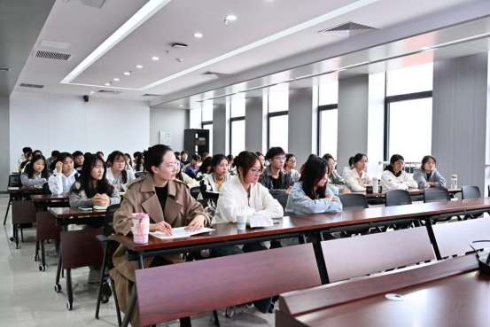 培训会上,赵青结合自身多年工作经验从短视频的创作思路、拍摄设备、画面处理、包装制作、UGC素材创作、短视频的文字及声音七个方面逐一展开介绍。赵青指出在拍摄短视频前要形成有画面感的创作思路,带着剪辑思维构思策划案。她详细介绍了时政类、新闻事件报道类、活动类、故事情节类四种不同风格短视频的画面处理技巧。她通过列举大量相关案例进行专业化剖析,让现场学生对于短视频的创作有了更加深入的理解。