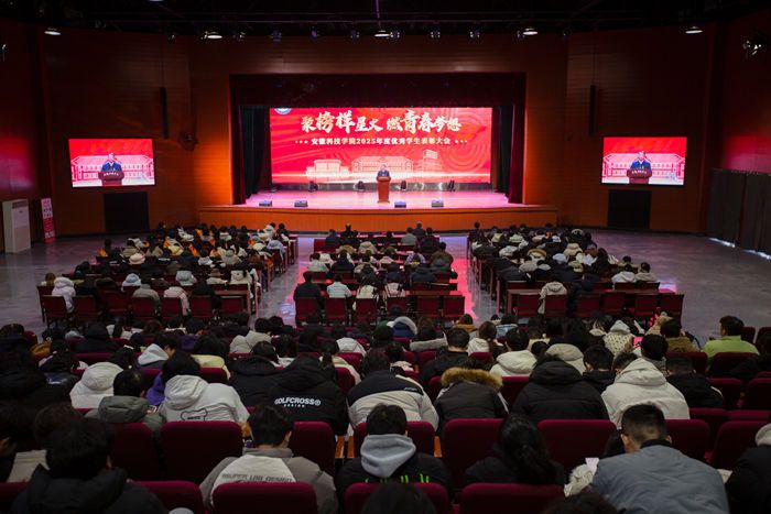 学校学生年度表彰大会已连续举办4年,大会既是安科学子年度盛典,也是一堂发挥青春榜样示范引领作用活泼生动的青春思政课。会上,我校全国学联28大代表、人文学院王家喜,大学生创新大赛国赛银奖和“挑战杯”国赛银奖团队成员、化学与材料工程学院王洋旭,安徽省学生体育联赛大学生排球亚军、校女子排球队,安徽省活力社团“国旗护卫队”、西部计划志愿者常啸分别以“奋进”“创新”“拼搏”“青春”“担当”为主题进行了事迹分享。颁奖典礼中,安徽省大学生活力社团“大学生花鼓艺术团”现场展演了《火火的花鼓敲起来》、“安徽省大学生校园十大歌手”决赛晋级选手凌天羽个人独唱《勋章》、校大学生器乐协会献上精彩文艺节目。