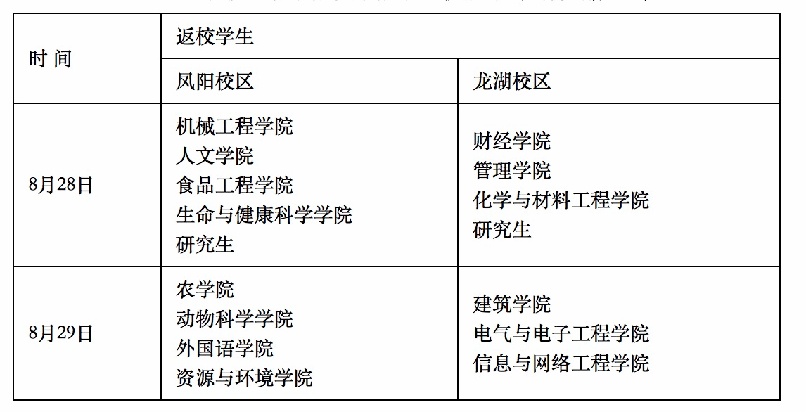 1、老生8月28、29日按照错时错峰原则分批返校报到。具体安排如下表: