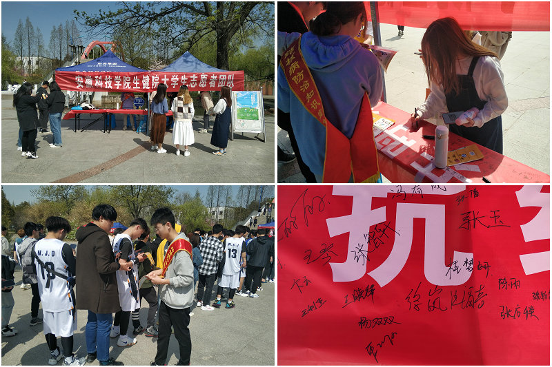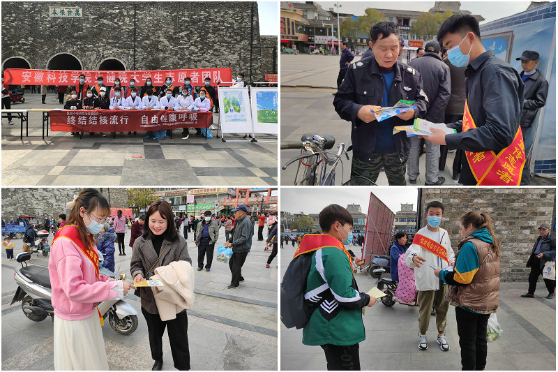 3月24日是第26个世界防治结核病日,为帮助广大群众和同学深入了解结核病的知识,增强对结核病的防范意识,当天下午,学院大学生志愿者团队与凤阳县卫生健康委员会、凤阳县人民医院、府城卫生院以及凤阳县疾病预防控制中心于凤阳县明中都鼓楼广场联合举办了主题为“终结结核流行,自由健康呼吸”的预防结核病宣传活动,同时该团队也在校内开展防治结核病宣传签字活动。