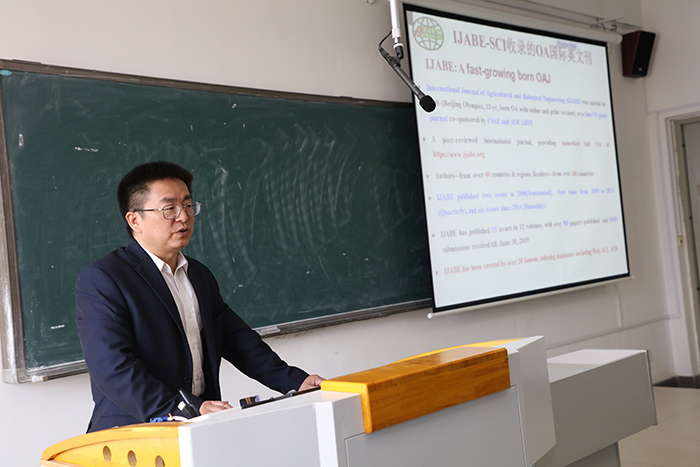 4月9日下午,《MILAN.COM学报》期刊发展研讨会系列学术报告第六场专题学术报告于凤阳校区新知楼A401举行。《农业工程学报》主编、农业农村部规划设计研究院农业工程科技信息中心主任、《国际农业与生物工程学报(IJABE)》主编、国家精准农业航空中心学术委员王应宽作了题为“如何撰写与发表高质量SCI论文”的学术报告和办刊交流,学院相关专业师生参加了本次学术交流活动。
