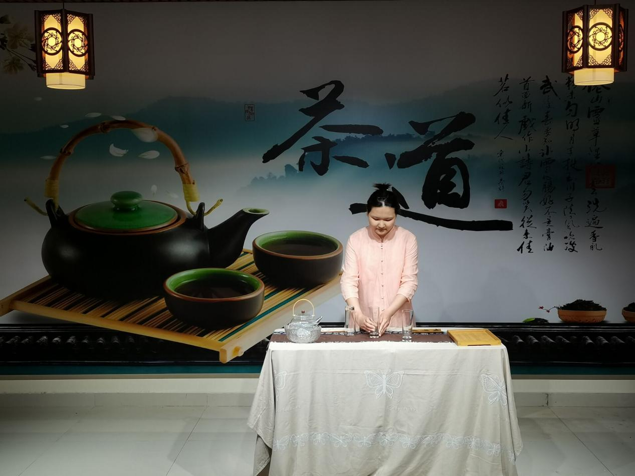 创意茶艺表演上,参赛选手们或着白裙西服,或着长衫汉服,依次对不同种的泡法茶艺进行了展示。聆音“茶”理队通过类似情景剧的表演方式将脱贫攻坚与红茶的雅趣、厚蕴相结合,团队成员间配合默契,行云流水般的茶艺表演和各具特色的才艺展示,使人仿佛身临其境,回味无穷。而个人赛孙晓雨选手的禅茶表演更是让人眼前一亮,不同于红茶的醇厚,绿茶的清冽在她干净利落的动作、轻柔的手法间展现地淋漓尽致,充分传递出传统茶艺之美。