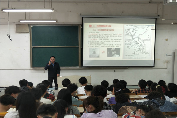 黄钦海以《抗美援朝新中国立国立威第一仗》为题,围绕抗美援朝的战争背景、战争过程、重大意义和抗美援朝精神等四个方面深刻讲授了抗美援朝这一仗的前因后果,并用大量翔实的历史资料及真实的英雄故事带领同学们回顾了那段艰苦卓绝的历史岁月,使参与学习的党员及同学对抗美援朝历史有了更深刻的了解与认识。黄钦海强调,抗美援朝是一场卫国之战、立国之战、立威之战,抗美援朝精神是为祖国和民族尊严而奋不顾身的爱国主义精神,英勇顽强、舍生忘死的革命英雄主义精神,希望同学们牢记历史,增强“四个意识”、坚定“四个自信”、做到“两个维护”,居安思危,努力工作,为实现“中国梦”贡献自己的力量。