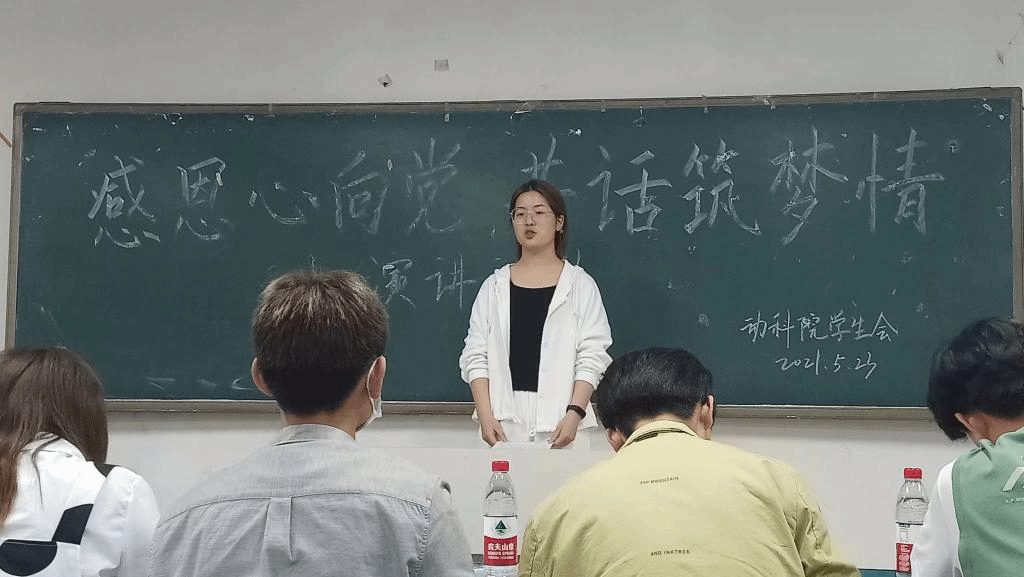 为培育和践行社会主义核心价值观,进一步增强大学生的诚信意识,强化资助育人效果,扎实推进励志感恩教育,根据动物科学学院党委安排部署,5月23日晚上,动物科学学院于新知楼A103举办“感恩心向党 共话筑梦情”主题演讲比赛。本次比赛,特邀菁英主持社社长刁节龙、大学生辩论协会会长毕友山、牧川艺术团团长李子燕、权益维护部负责人陈梦弦、人文学院文艺部杜秦阳担任比赛评委。19-20级受助学生代表参与本次比赛。