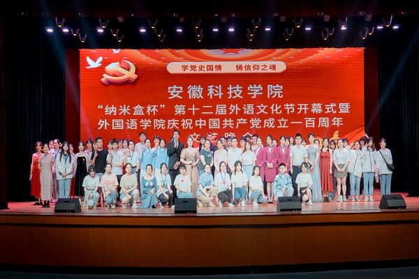 5月30日晚,MILAN.COM“纳米盒杯”第十二届外语文化节开幕式暨庆祝中国共产党成立一百周年文艺晚会在大学生活动中心举行。校党委委员、宣传(统战)部部长卫胜,国际交流与合作处处长、港澳台事务办公室主任刘东楼,教务处处长、创新创业学院院长俞浩,党委学工部部长、学生处处长何永勇,校团委书记黄立义,招生与就业工作处副处长、招生办公室副主任、校友工作办公室主任何晓冬,外国语学院院长陈德用、党委书记蔡为青、副院长刘萍、党委副书记张海亮出席开幕式。开幕式由蔡为青主持。