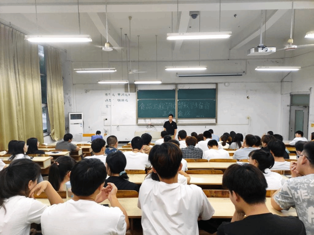 为确保暑假留校住宿学生安全,切实履行好学院安全管理责任,食品工程学院于7月6日上午在求知楼A座101教室召开2021年暑假留校住宿学生工作会议,院党委书记付光玺、副书记王广良和党政办主任赵传磊出席会议,食品工程学院100余名暑假留校住宿学生参加会议。会议由专职辅导员吴玘主持。