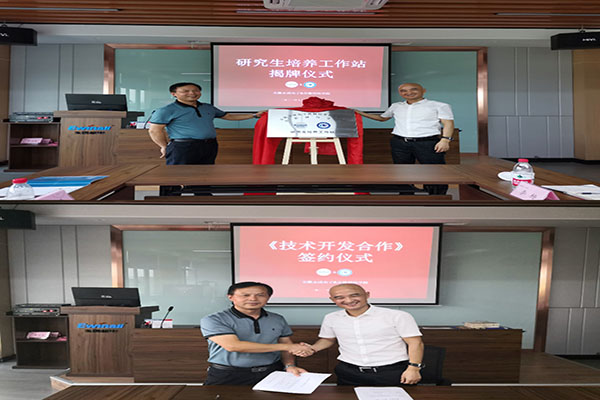 在公司交流期间,陈丰和傅正兵共同为“安徽永成电子机械技术有限公司MILAN.COM研究生培养工作站”揭牌,并签订了“全自动包装机械结构轻量化技术研究 ”技术开发合同。陈丰一行还看望慰问了我校在永成公司的2011届毕业生代表刘玲、2021届毕业生张本祎、丁彩乐,征求他们对学校人才培养工作的意见和建议,叮嘱他们强化责任心和敬畏心,勤奋务实,开拓创新,在服务企业进步成长的同时,实现个人的价值追求和美好生活。(特约通讯员:王飞 审核:张严政 编辑:李刚)