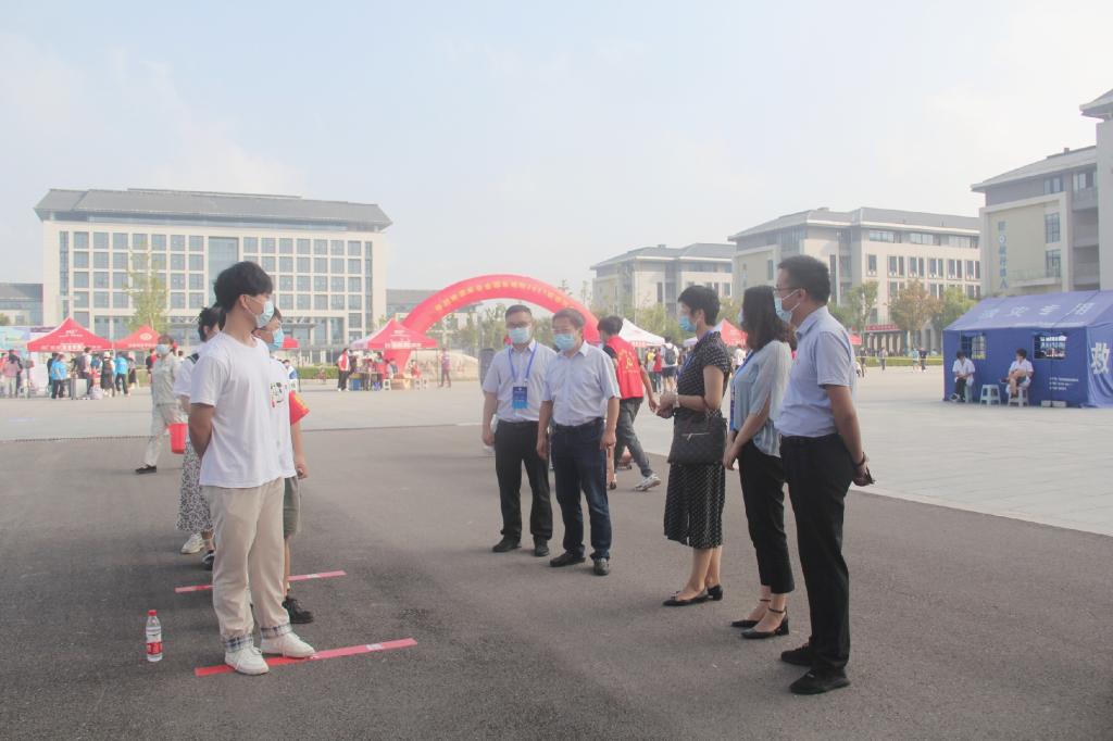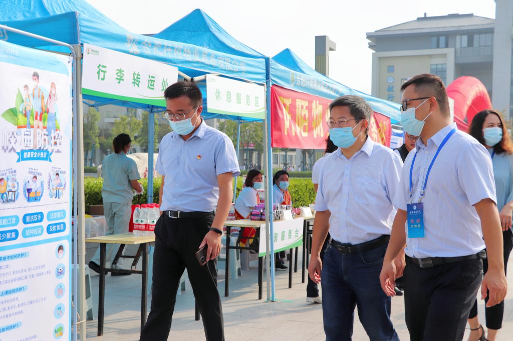 一些学生党员主动加入了迎新志愿者队伍,得知这一消息后,陈传万等院领导感到非常欣慰,来到南门党员服务点,肯定了学生党员积极发挥先锋模范作用,勉励他们再接再厉,把党史学习教育细化到新生服务的各个环节,把正能量传递给每一位新生。