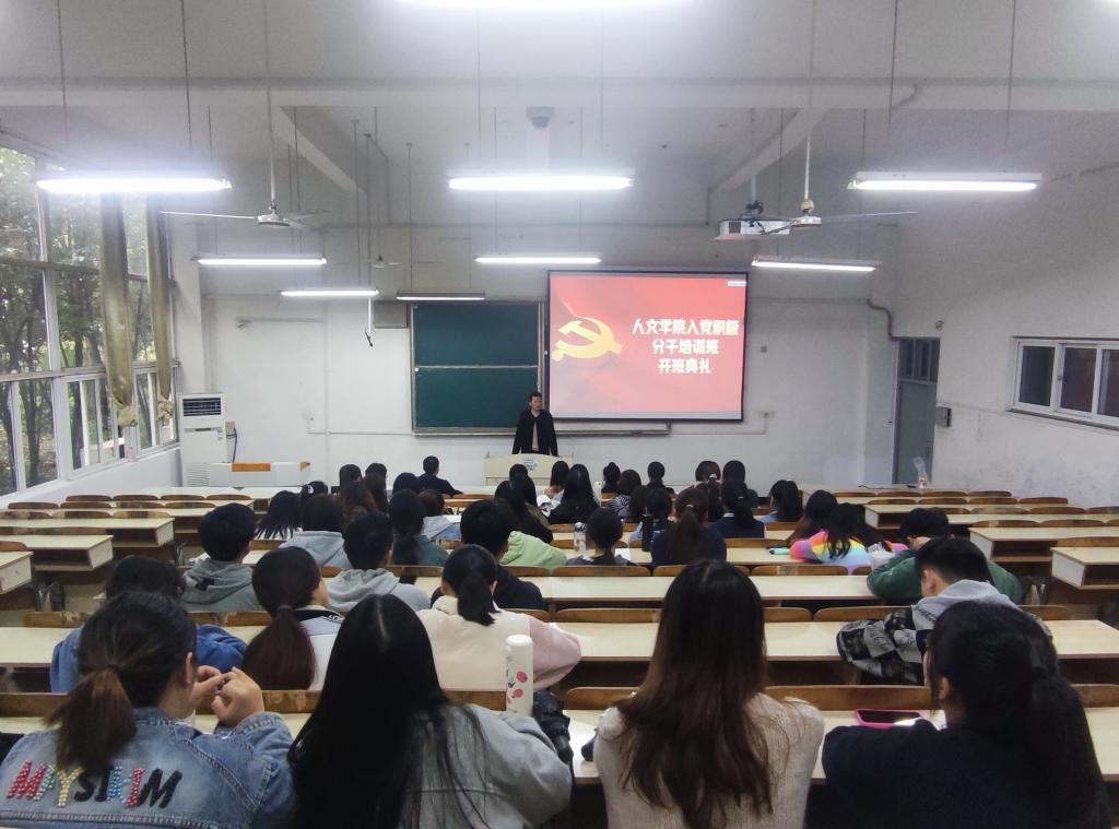为推进落实党史学习教育工作,提升我院入党积极分子的政治理论素养和党性修养,10月20日中午,人文学院于求A103教室举办人文学院第55期入党积极分子培训班开班典礼。人文学院党委副书记李沙娜、编辑出版与汉语言文学学生党支部书记焦雪松、法学学生党支部书记方明旺参加了开班典礼。典礼由焦雪松主持。