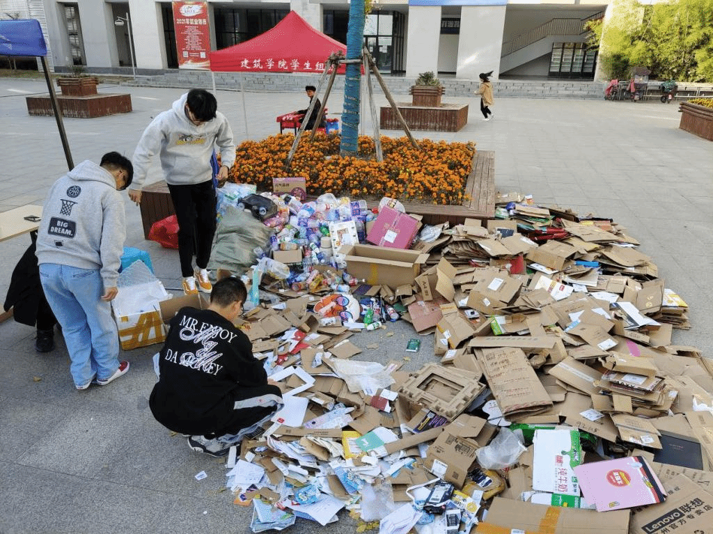 在活动准备前期,同学们踊跃报名,希望能为环保事业贡献自己的力量。志愿者采取分组回收的方式进行工作,随后各组长带领组员们到宿舍楼进行废品回收,最后在固定地点集合。在回收废品的过程中,大家一遍又一遍地耐心询问,同学们积极配合,纷纷拿出自己的废瓶纸箱,活动进行得十分顺畅。搬运废品的过程中,志愿者们分工合作,齐心协力把满满当当的回收袋运至固定点,并将其进行分类整理,便于回收利用。在活动过程中,来自电子信息工程专业的汤志感慨万千,他表示“人生的意义不在于索取,而在于奉献!因为坚信爱和善良的力量,所以我正在努力成为一名合格的志愿者。”
