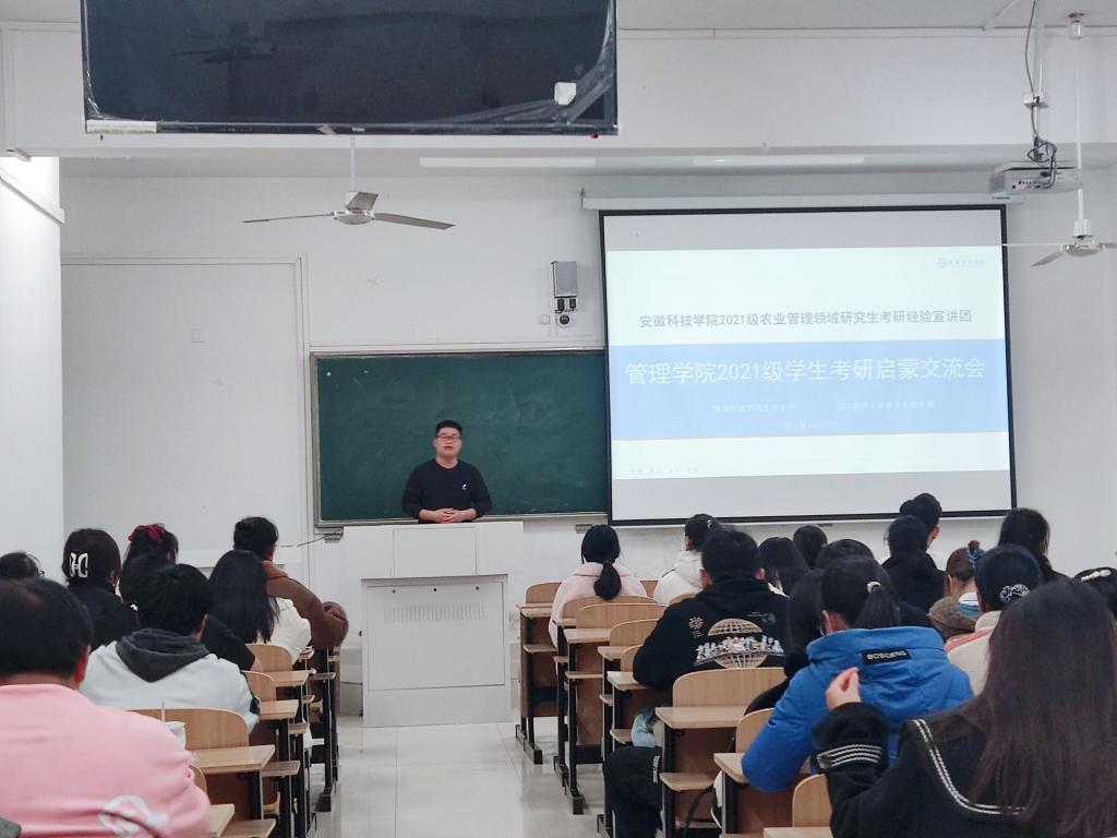 为了促使21级新生对考研有更进一步的了解,帮助新生更好地规划大学生活,12月6日晚,管理学院研究生支部在致知楼C208为2021级市场营销专业79位同学开展了考研启蒙宣讲会。