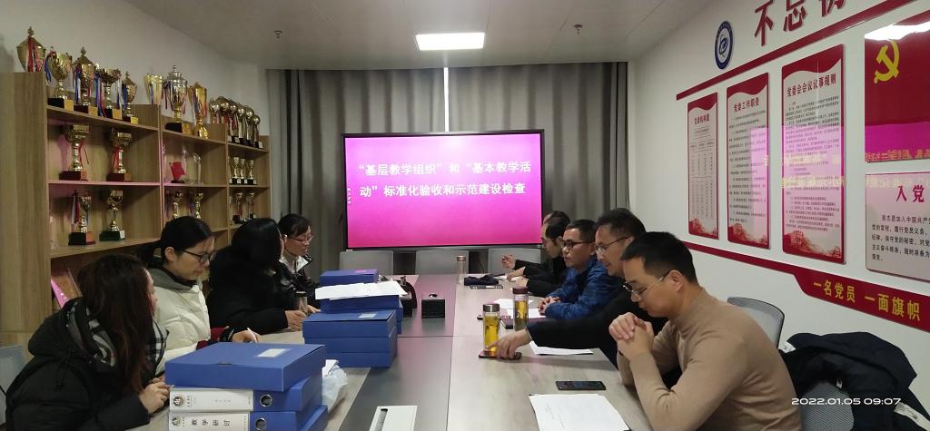 验收检查会分两个阶段进行,第一阶段参加验收与检查的基层教学组织负责人汇报所属基层教学组织、课程达标与示范进展情况;第二阶段专家组对支撑材料进行系统查看。