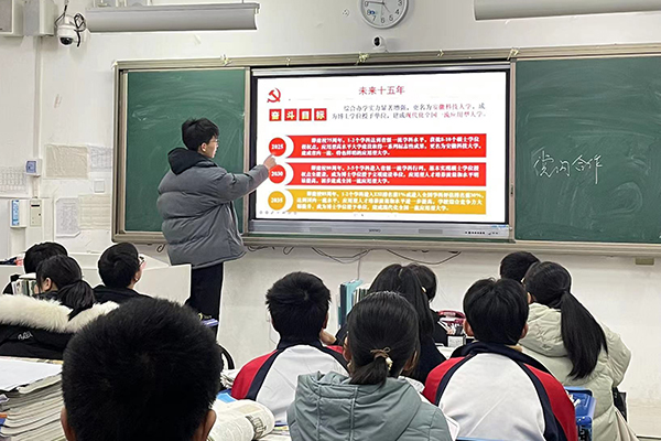社会实践团队成员在征得母校同意并严格遵守疫情防控的前提下进校,在教室里对高三的学弟学妹们进行了宣讲。首先团队成员以播放PPT的形式向学弟学妹们详细介绍了我校各方面发展,为同学们解读我校招生政策,对他们即将面临高考进行加油鼓劲。同时,老师也参与到同学们的讨论之中,就高考报名招生的热点问题进行了解答。