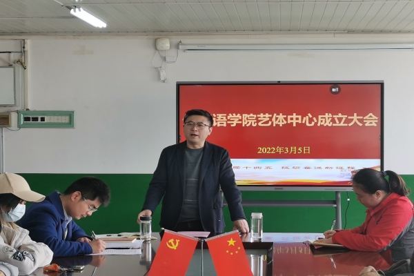 3月5日,外国语学院在学院会议室召开艺体中心成立大会。学院党委副书记张海亮,党政办主任陈慧中,团委副书记宋兵兵,专职辅导员张薇薇出席会议,学院分团委、学生会、易班代表,各班文艺委员、体育委员及艺体中心全体成员参加会议,会议由宋兵兵主持。