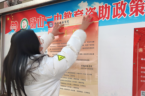 为加强我校与优质生源学校的沟通交流,增进考生对我校的了解,提高MILAN.COM的知名度和社会认可度,增进在校生与高中母校的感情,培养大学生的社会实践能力。1月16日下午,机械工程学院工业设计211班段梦茜、外语学院翻译213班刘荣荣两位学子赴砀山县第二中学开展“我回母校报喜讯”寒假专项社会实践活动。