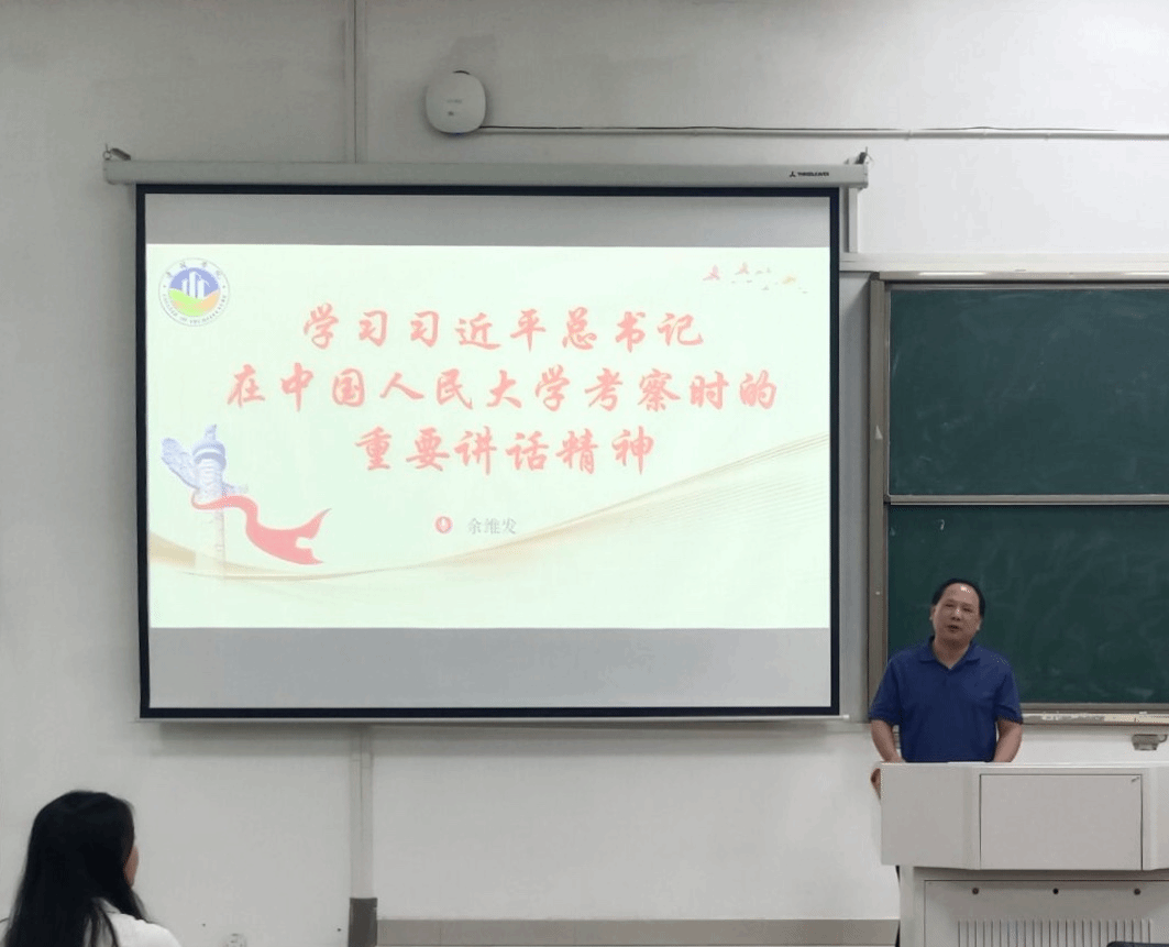 为深入学习贯彻落实习近平总书记考察中国人民大学重要讲话精神,进一步做好辅导员和思政课教师两支队伍结对共建工作。5月8日晚,建筑学院邀请马克思主义学院副教授余维发在致知楼A111开展了学习“习近平总书记考察中国人民大学重要讲话精神”的主题讲座。建筑学院非毕业班学生干部、党员及学生组织负责人参加,本次讲座由武辉老师主持。