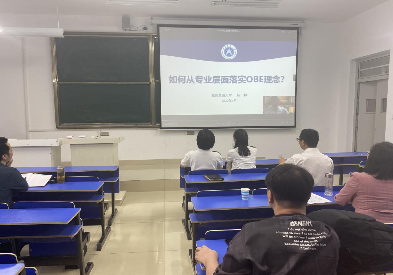 会上,全体老师聆听了由笃行教育在线平台提供的回放视频——重庆交通大学杨林教授所作“如何从专业层面落实OBE理念”的报告。报告从本科教育教学审核评估、本科专业类教学质量国家标准、国家专业认证(评估)、国家级一流本科专业、国家级一流本科课程、“四新”改革六个方面对专业认证进行阐述。杨林教授关于OBE教育理念,以更专业的视野和格局使全体教师认清了专业建设新形势,树牢了专业发展新理念,对学院认证工作具有一定的指导性作用。