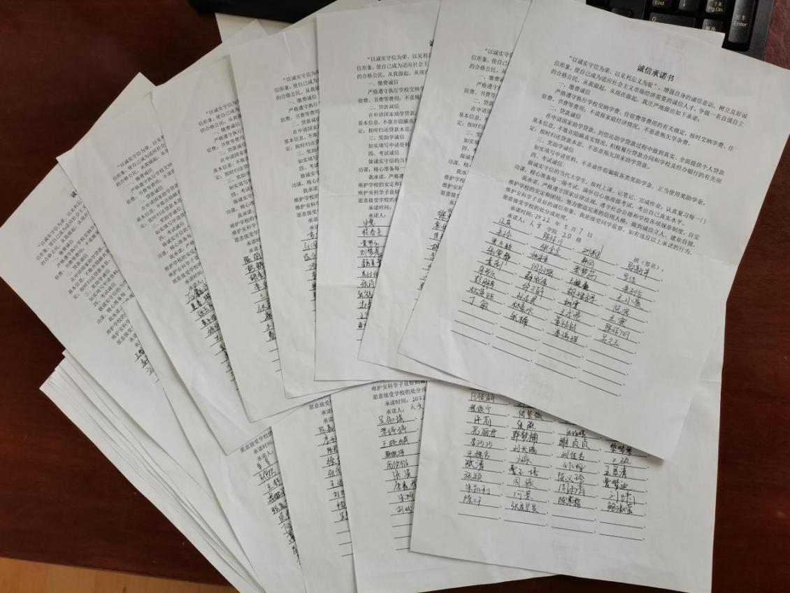 5月2号至6号,人文学院各班级579名同学签订“诚信承诺书”,承诺以诚信的行为在今后的学习和生活中严格要求自己。