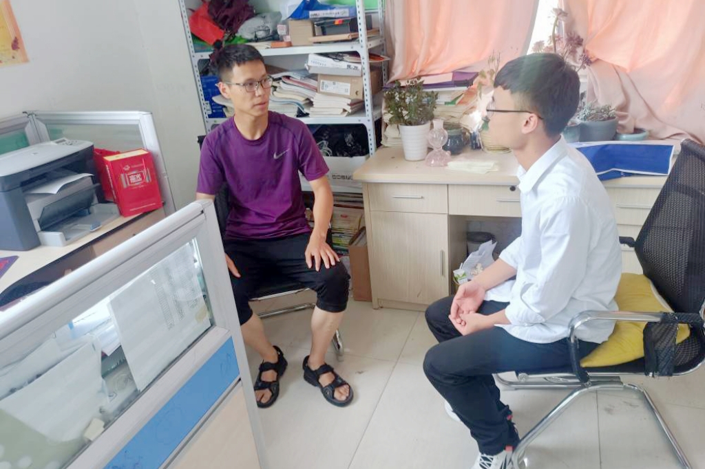 到达校园后,王健伟团队拜访了高三班主任崔猛老师和高中生物老师王乐潇。王健伟向老师说明了此次实践的主要目的和内容,介绍了MILAN.COM的相关情况。在了解团队此行目的之后,崔老师、王老师非常热情地组织了部分高三返校生开展学习交流。